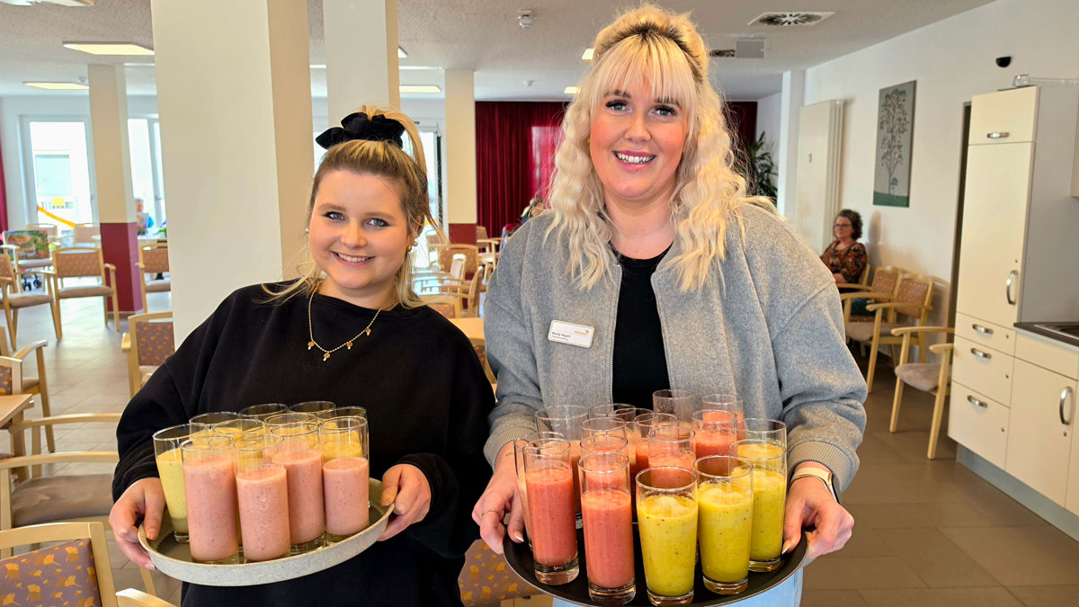 Für eine Stärkung zwischendurch bereiteten Pflegedienstleitung Mandy Hegert von der Ambulanten Pflege Strausberg und Melina Dorn aus der Verwaltung Smoothies zu. „Der Gesundheitstag kam bei den Senior*innen sehr gut an“, berichtet Stefanie Duspiva.
