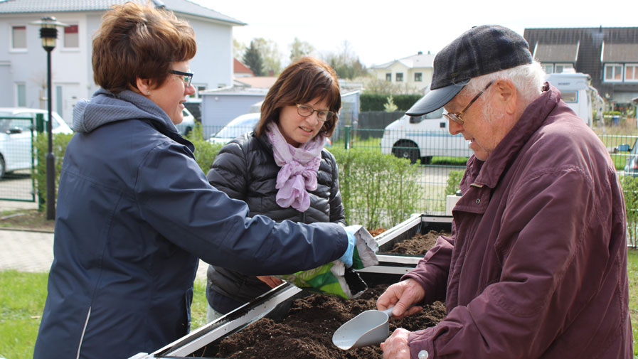 Kürzlich bepflanzten einige Mieter*innen aus dem Service-Wohnen zusammen mit einigen Mitarbeiter*innen den Außenbereich der Seniorenresidenz Eberswalde. Unterstützt wurden sie dabei von den Mitgliedern des Vereins Gemeinsam Lichterfelde e.V., der sich in der Gemeinde Lichterfelde engagiert. Die Zusammenarbeit kam über den Vorstand Ulf Lubke zustande, seine Mutter lebt in der Einrichtung. Der Verein bot nicht nur "helfende Hände" an, sondern spendete außerdem Anhängerladungen voller Rindenmulch und Muttererde für die Pflanzaktion. „Trotz der frischen Temperauren haben die Mitglieder des Vereins bei der Außengestaltung mit angepackt. Herzlichen Dank für die Unterstützung und die Spende, über die wir uns sehr gefreut haben“, sagt Einrichtungsleitung Andrea Notroff. Toll!